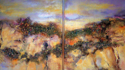 olieverf schilderij 2luik. titel; Zandsteen-mergelwanden